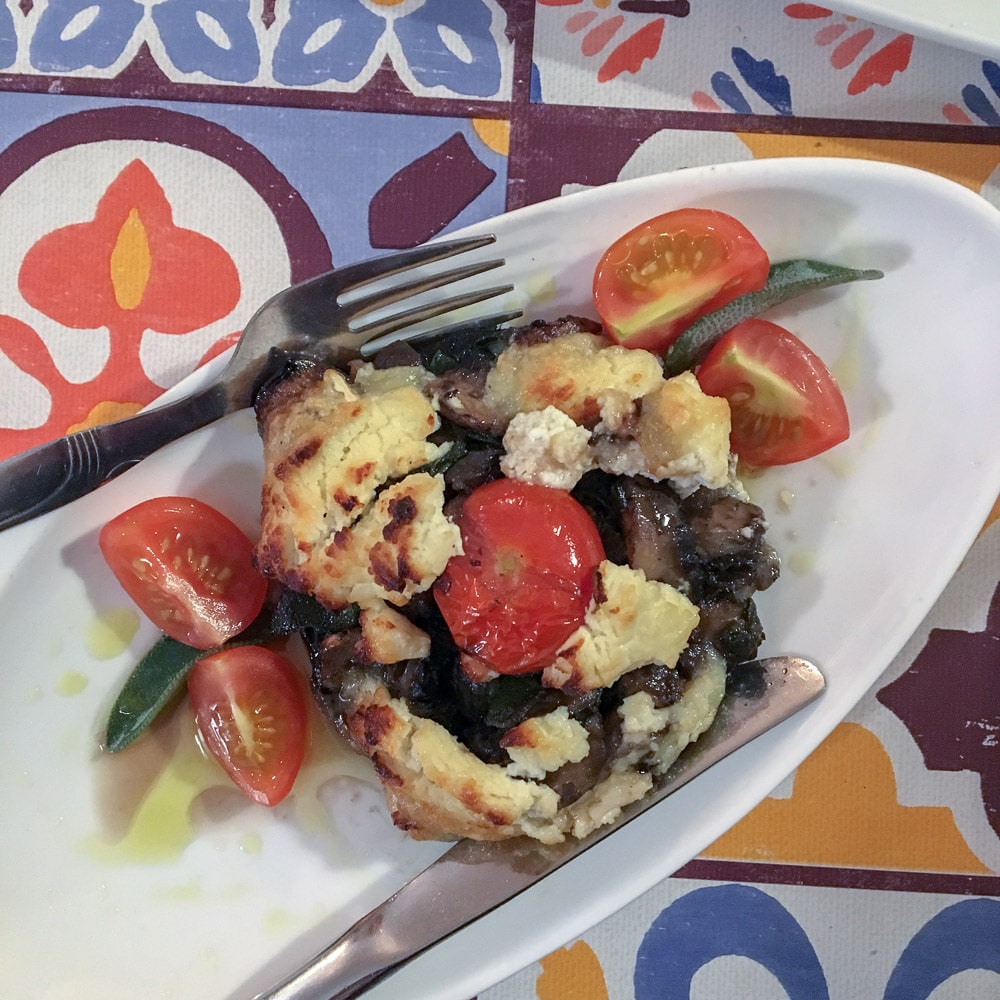 Portobello mushroom stuffed with chèvre cheese and cherry tomato