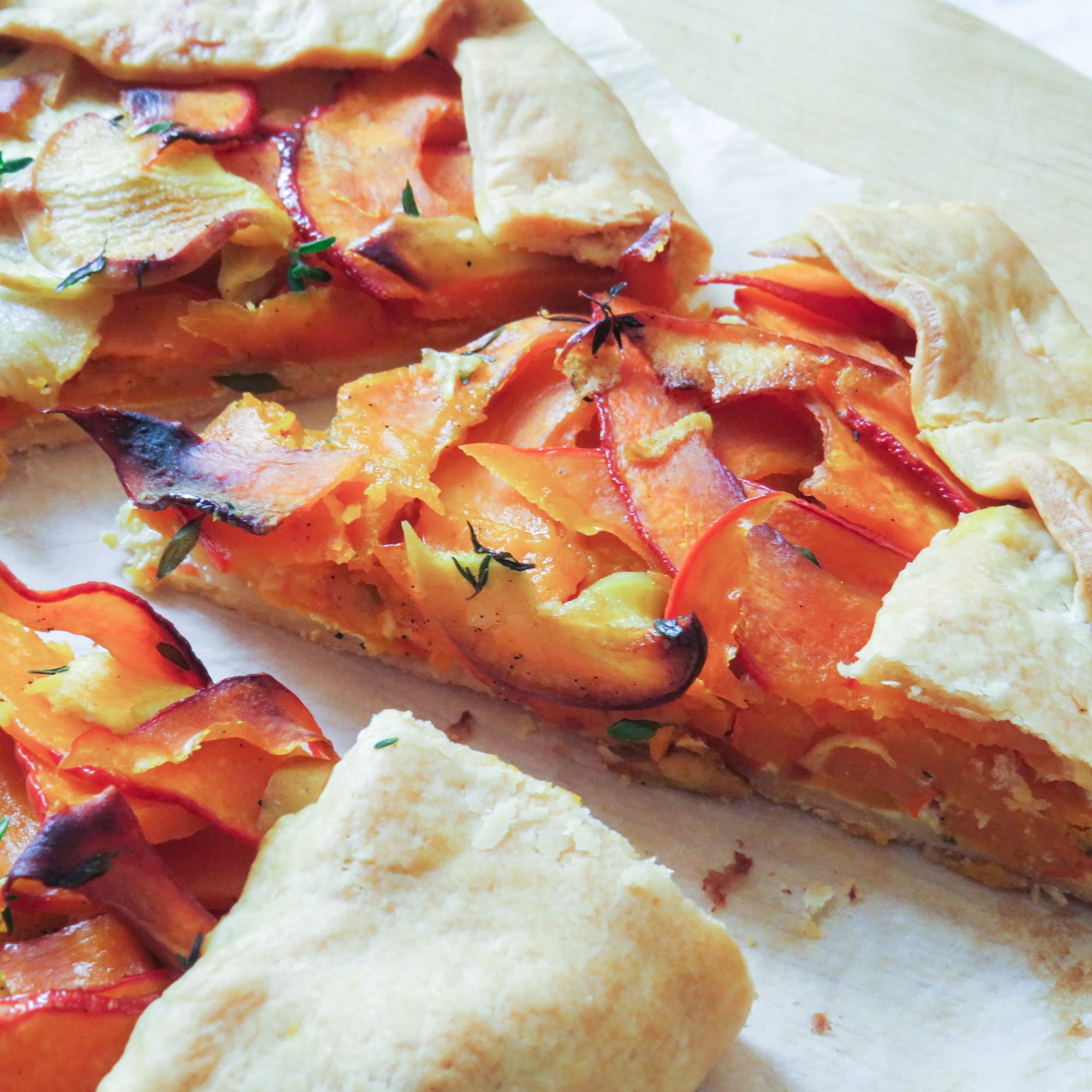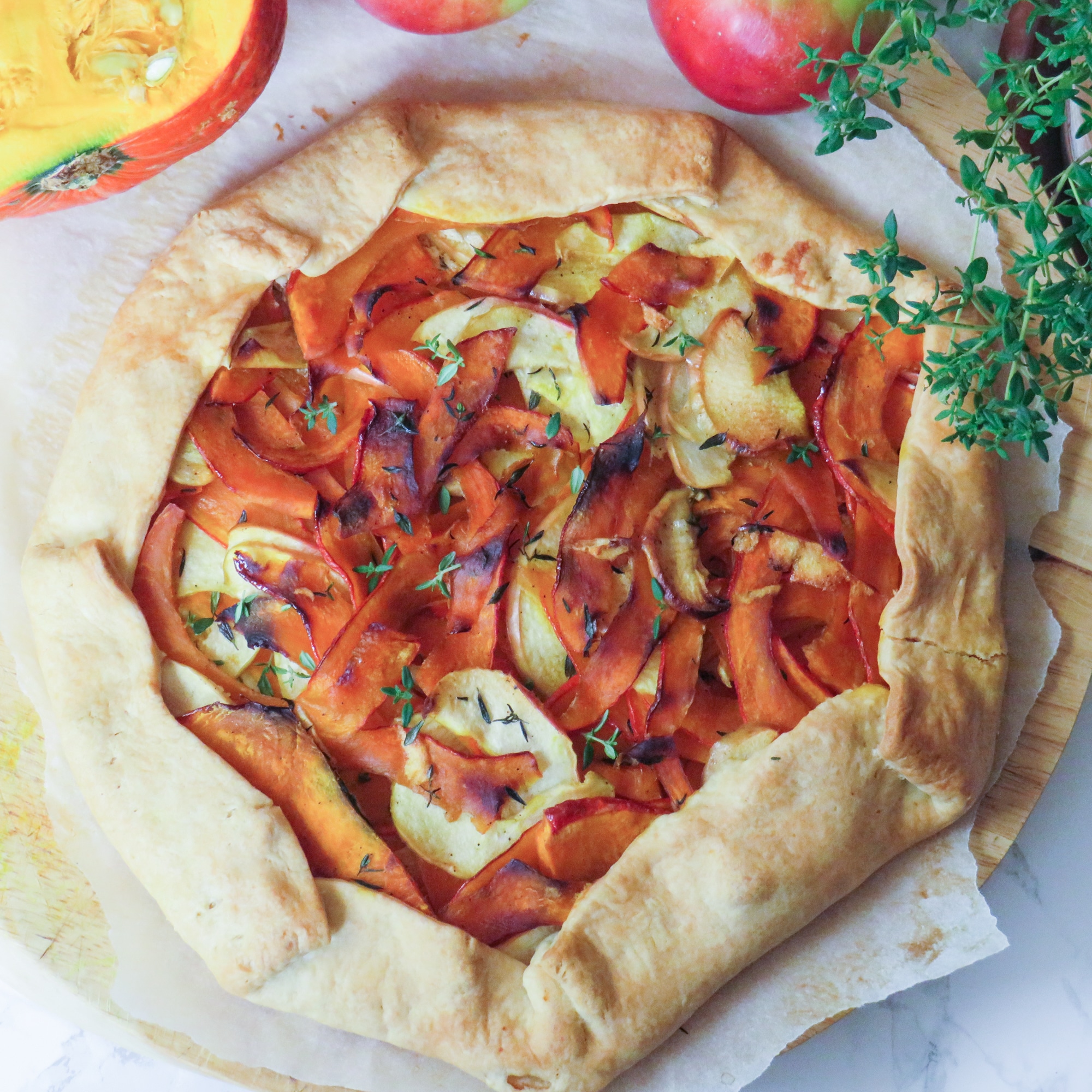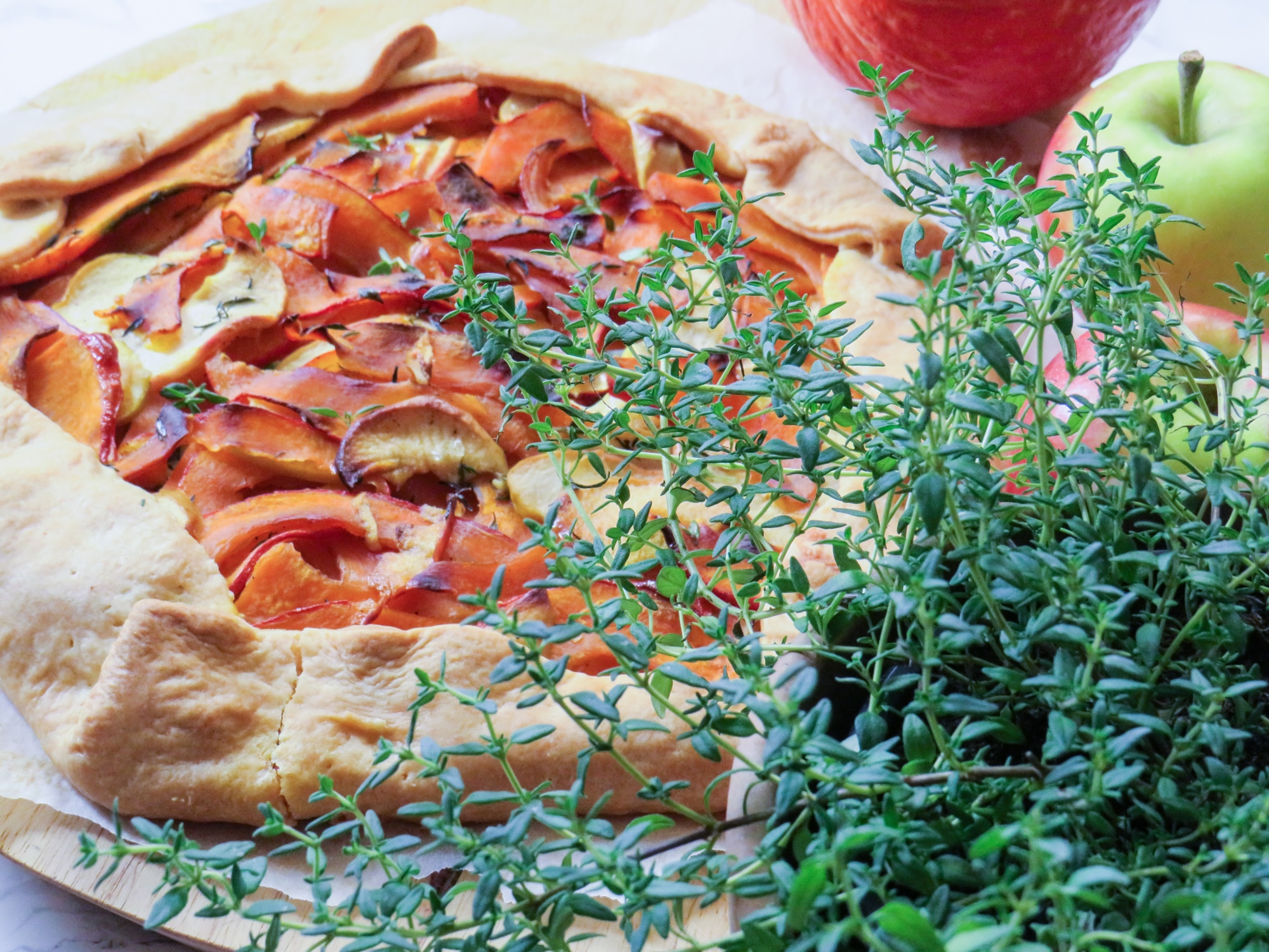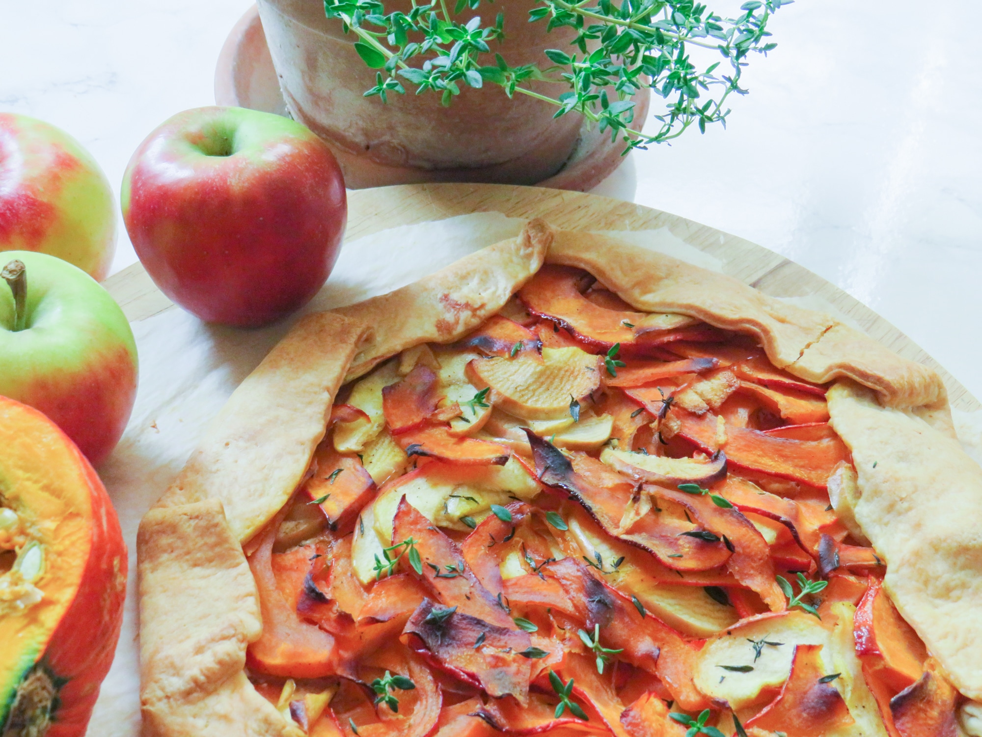 Auch vegetarische Küche kann herzhaft sein! In einer hübschen Galette habe ich einige meiner liebsten Herbst-Zutaten vereint. Apfel und Kürbis harmonieren optimal und ihr süßlicher Geschmack wird mit Honig und Thymian noch verfeinert. Der Ziegenfrischkäse verleiht der Galette noch einen cremigen Untergrund. Sobald die Apfel-Kürbis-Galette im Rohr ist, macht sich ein süßlicher Duft in der Küche breit. Das ideale Herbstessen für die Seele!