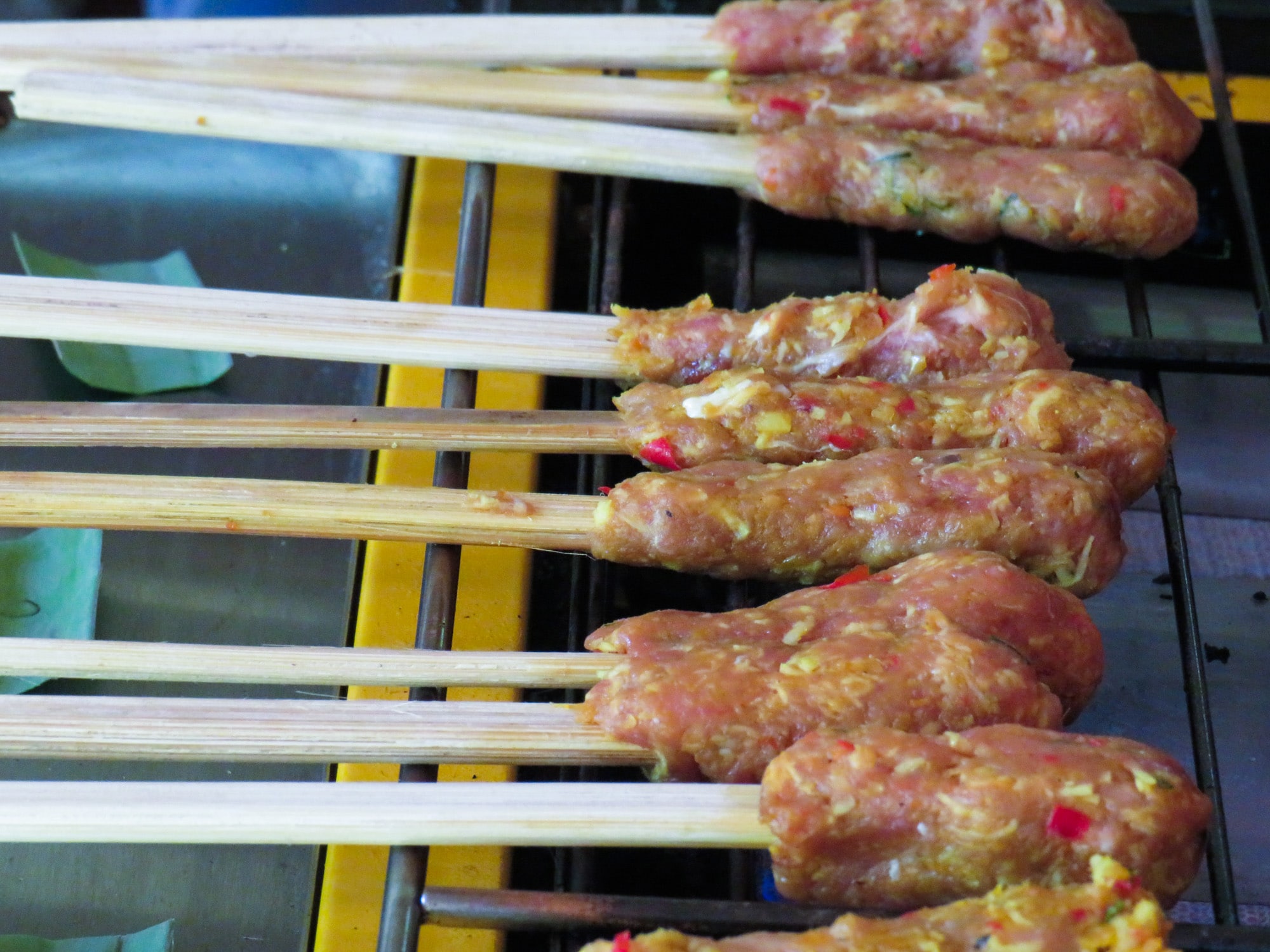 Mit der Gewürzpaste als Basis bereiteten wir nun noch ein einfaches und schnelles Balinese Chicken Curry zu. Außerdem lernten wir noch wie man Sate Lilit, die berühmten Satay Spießchen, macht. In diese Fall verwendeten wir für die Spießchen faschiertes Schweinefleisch, man kann aber genauso gut Hühnerfleisch verwenden.