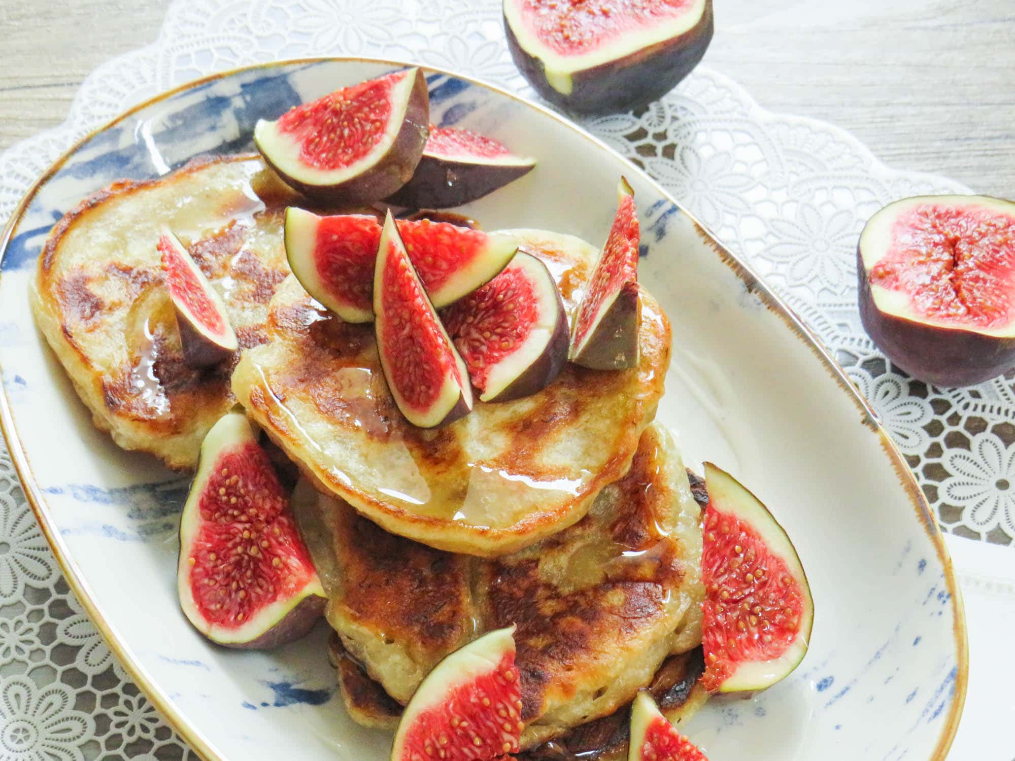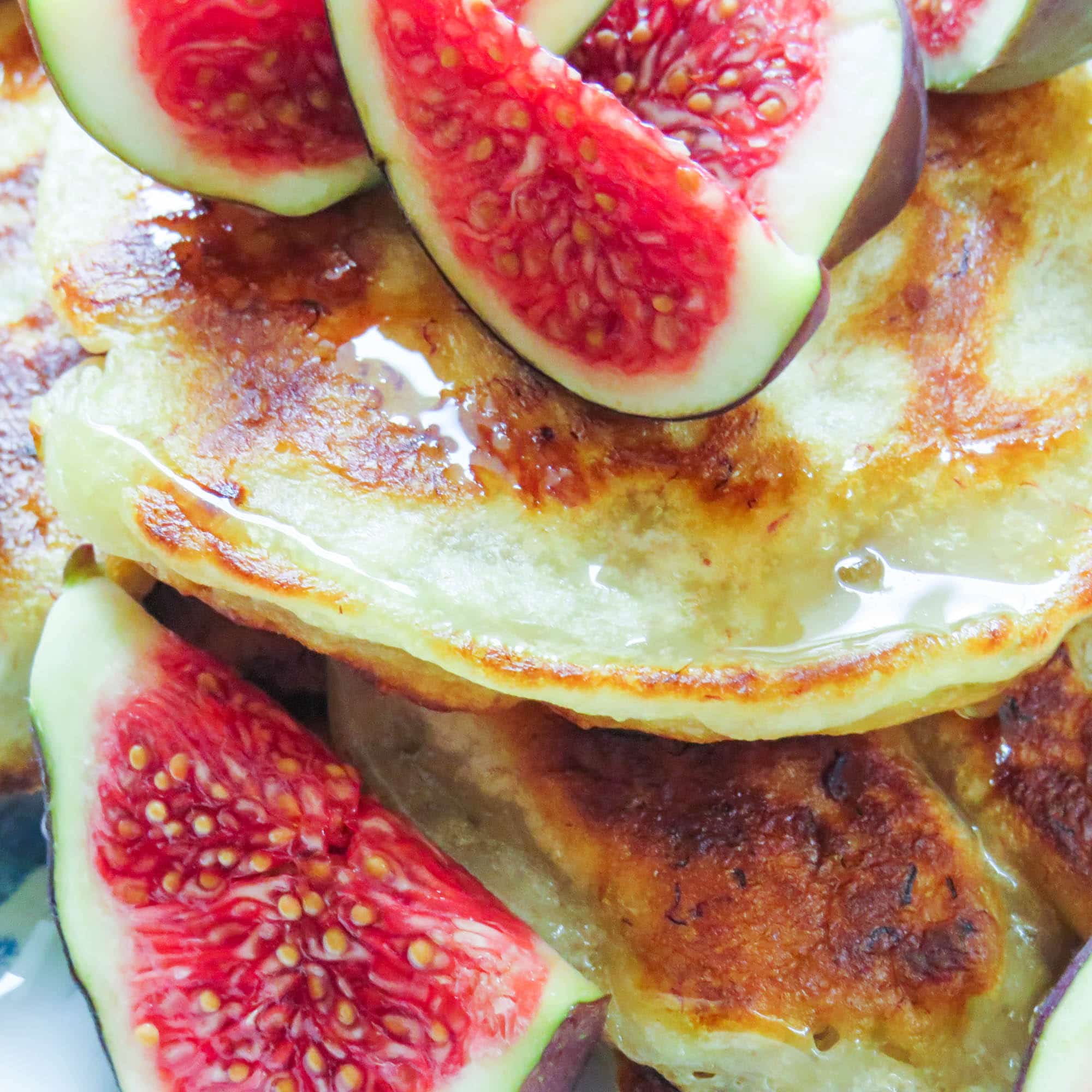 Es gibt unzählige verschiedene Varianten um Pancakes herzustellen. Ich hab mich diesmal für einen Teig mit Bananenmus, glutenfreiem Mehl und Reismilch entschieden. Die Bananen machen die Pancakes einfach total saftig, was mir besonders gut schmeckt. Wem das noch nicht genug ist, der kann natürlich auch noch ein paar Bananenscheiben anbraten als Topping für die Pancakes. Ich habe mich jedoch für frische Feigen entschieden, die auch super dazu passen.