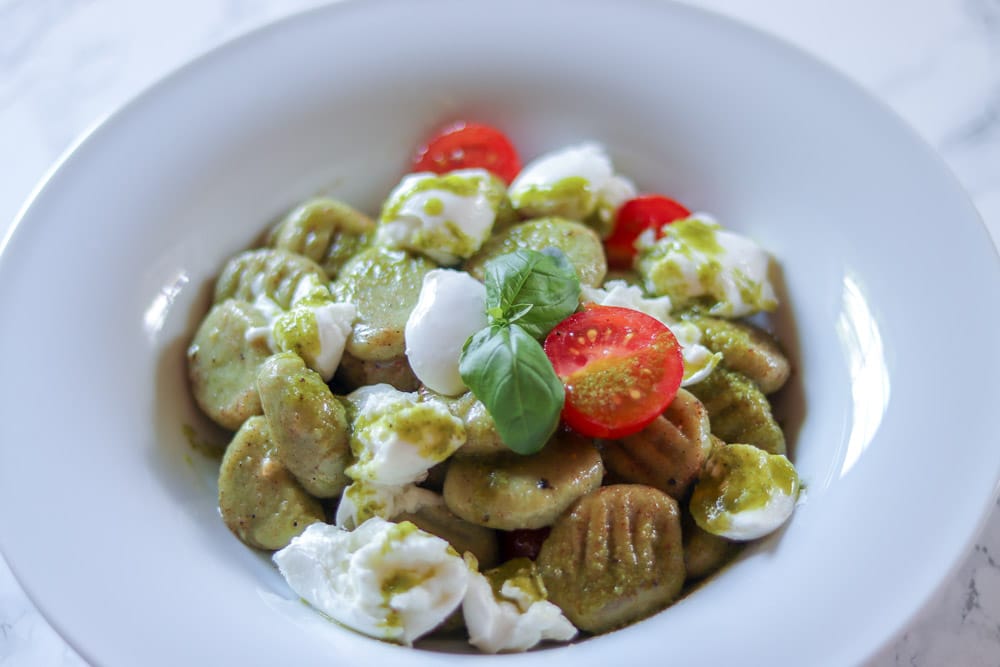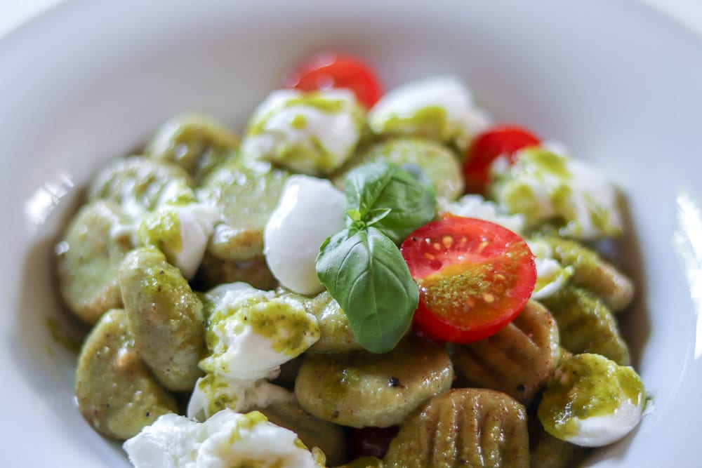 Gibt es eine bessere Geschmackskombination als frisches Basilikum, zarten Büffelmozzarella und saftige Tomaten, um sich langsam kulinarisch auf den Sommer einzustimmen? Ich denke nicht! Den italienischen Tricolore-Klassiker habe ich in Form eines Gnocchi Gerichtes etwas abgewandelt. Ein zitroniges Basilikumöl verleiht dem ganzen das gewisse Etwas!
