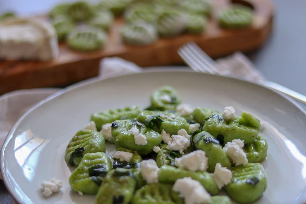 Last but not least… flaumige grüne Bärlauch Gnocchi. In Bärlauchbutter geschwenkt und darüber noch ein bisschen Ziegenkäse gebröselt, sind diese Gnocchi einfach köstlich!
