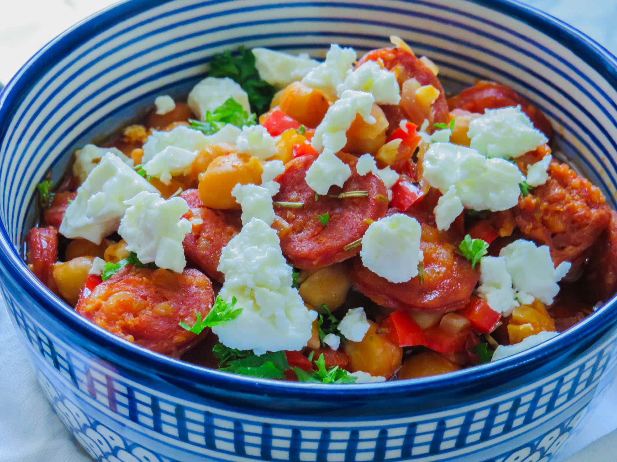 Chorizo-Kichererbsen-Eintopf mit Schafkäse