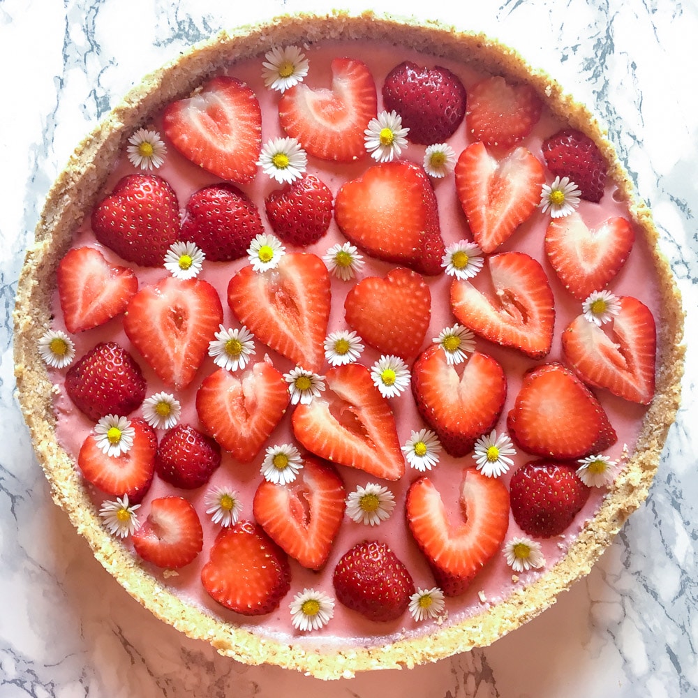 Erdbeer-Kokos-Tarte mit Gänseblümchen
