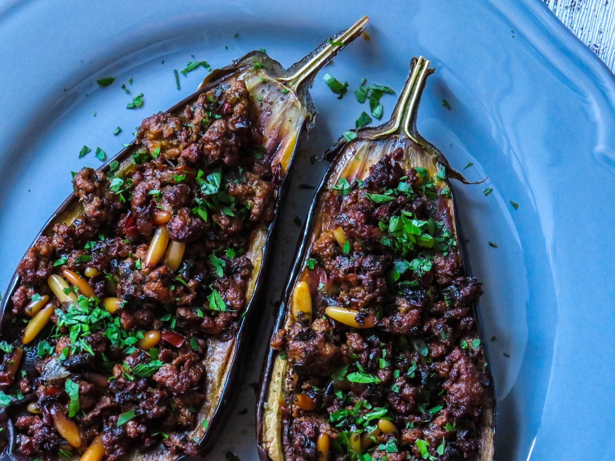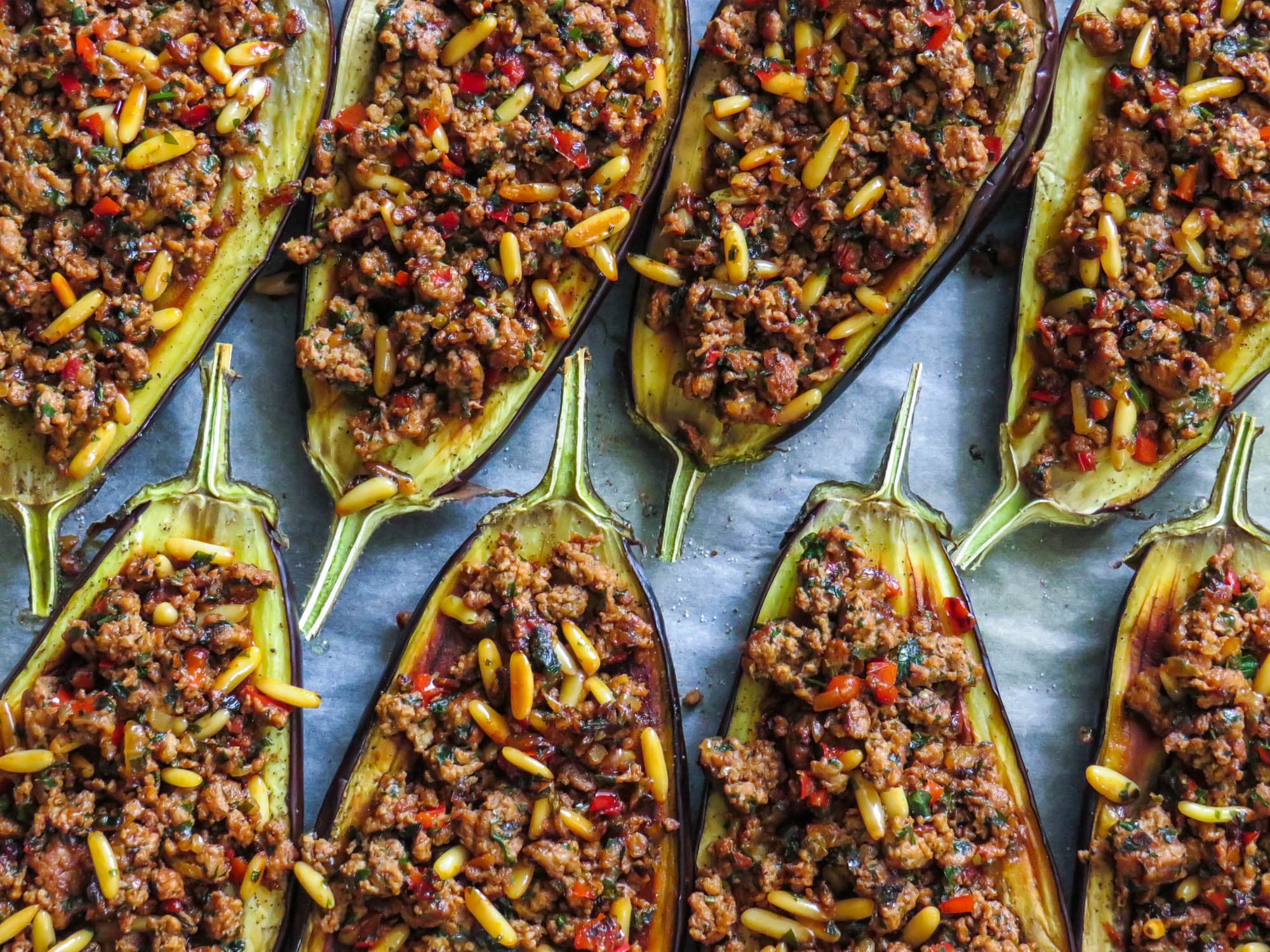 Die Kombination aus Lammfaschiertem und typisch orientalischen Gewürzen wie etwa Kumin, bei uns besser als Kreuzkümmel bekannt, ergibt einen unverkennbar intensiven Geschmack, den ich liebe. Vereint werden die beiden Zutaten in diesen gefüllten Melanzani mit Lamm und Pinienkernen.