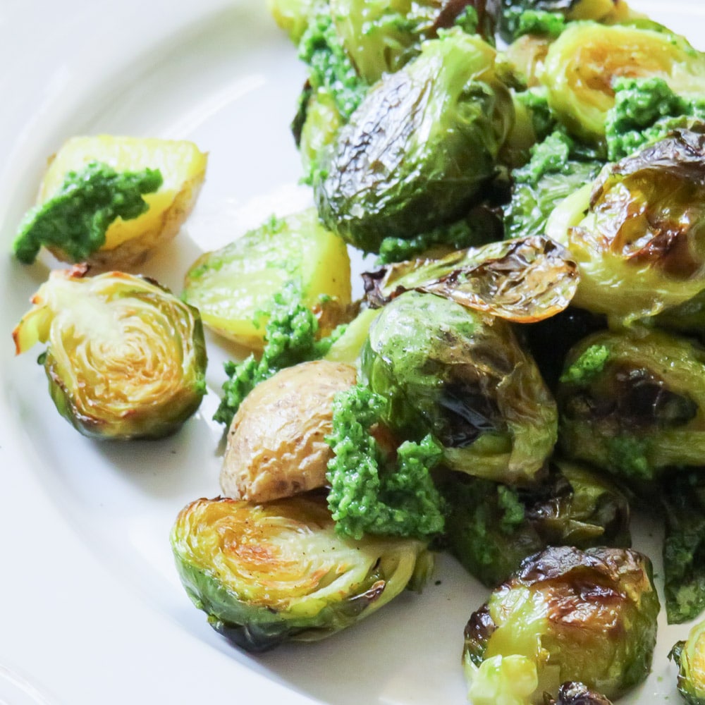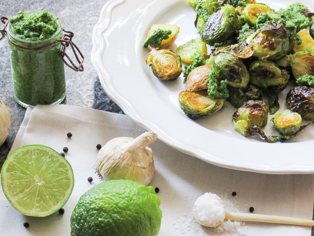 Geröstete Kohlsprossen mit Koriander-Pesto