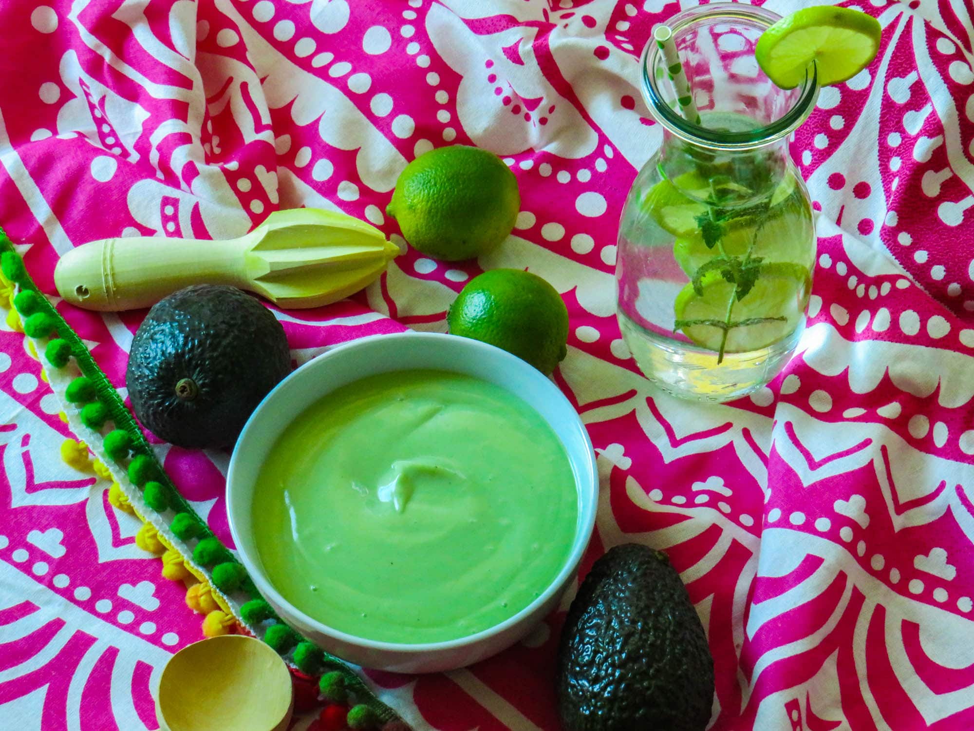Noch ein kleiner Tipp: Die Avocadokerne nicht wegwerfen! Wie ihr sicher schon bemerkt habt, wird die Avocado schnell braun, sobald man sie angeschnitten hat. Der Avocadokern enthält jedoch Enzyme, die die Oxydation verlangsamen. Daher einfach die Kerne in die Guacamole, oder in diesem Fall in die Guacamole-Suppe, legen und dadurch bleibt sie viel länger grün. Und tatsächlich war meine Guacamole-Suppe auch am nächsten Tag noch super frisch und grün!