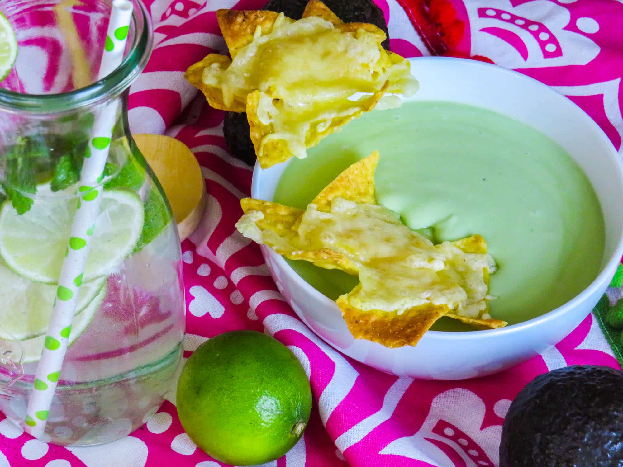 Guacamole-Suppe mit überbackenen Tortilla-Chips