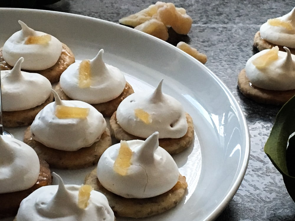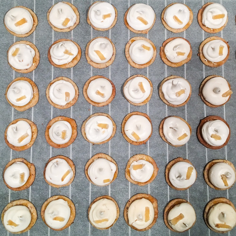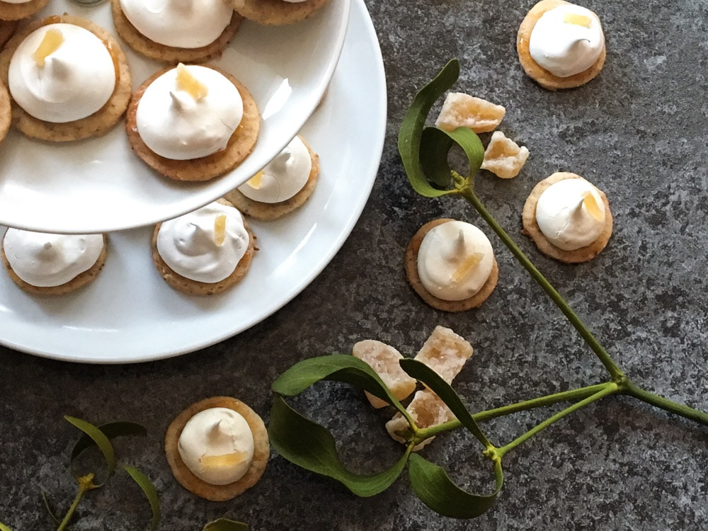 Nach Florentiner und Schoko-Rosmarin-Keksen gibt’s heute das nächste Rezept für die Weihnachtsbäckerei! Für die Ingwer-Busserl braucht man Geduld und Muße… Im Vorjahr habe ich die Busserl mit kandiertem Ingwer zum ersten Mal ausprobiert, leider waren die Angaben im Rezept suboptimal und deshalb habe ich mir eigentlich geschworen, diese Kekse nie wieder zu backen. Zu meinem Erstaunen sind jedoch ausgerechnet die Ingwer-Busserl ausgezeichnet bei meinen Weihnachtsbäckerei-Abnehmern angekommen. Besonders Tristan, mein Patenkind, hat sich in die süßen Ingwer-Busserl verliebt.