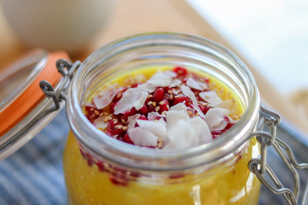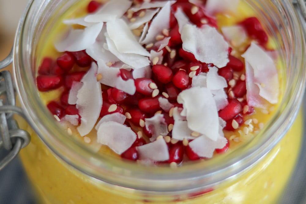 Kurkuma-Porridge mit Granatapfel und Kokos