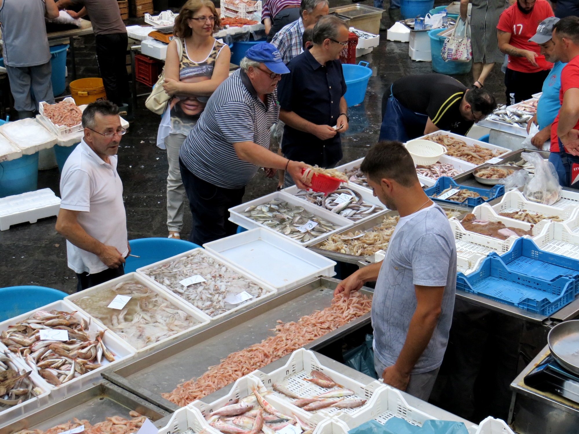 Ein kulinarisches Highlight jeder Sizilienreise ist bestimmt der Besuch des Fischmarktes von Catania – La Pescheria. Das bunte Geschehen verfolgt man am besten von der Balustrade auf der Piazza Alonzo di Benedetto aus. Den ganzen Vormittag über herrscht geschäftiges Teiben auf dem orientalisch anmutenden Markt. Es wird gefeilscht, diskutiert und kritisch begutachtet. Beim Anblick der fangfrischen Meeresfrüchte und Fische bekommt man sofort Lust selbst einzukaufen und leckere Gerichte zu zaubern.