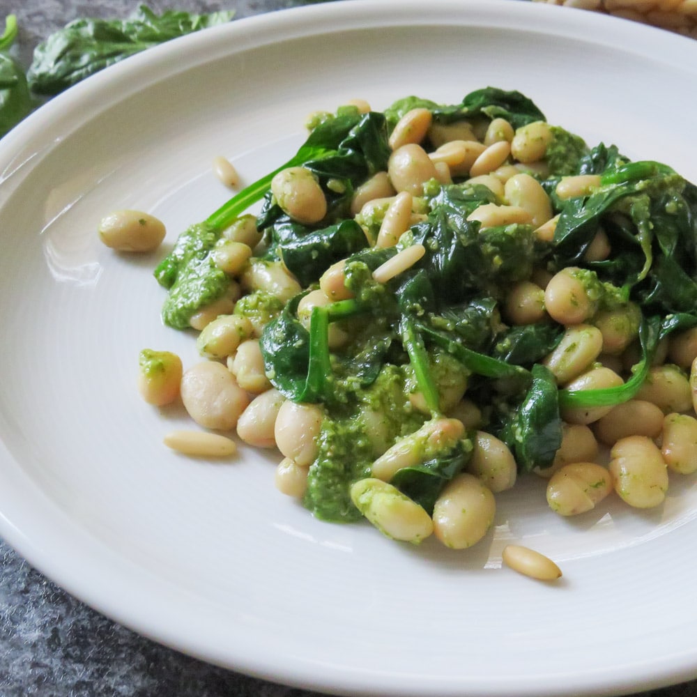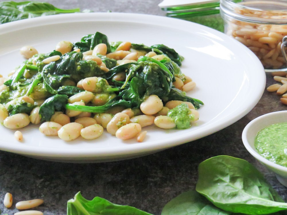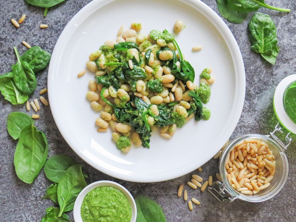 Lauwarmer Bohnen-Spinat-Salat mit Pesto