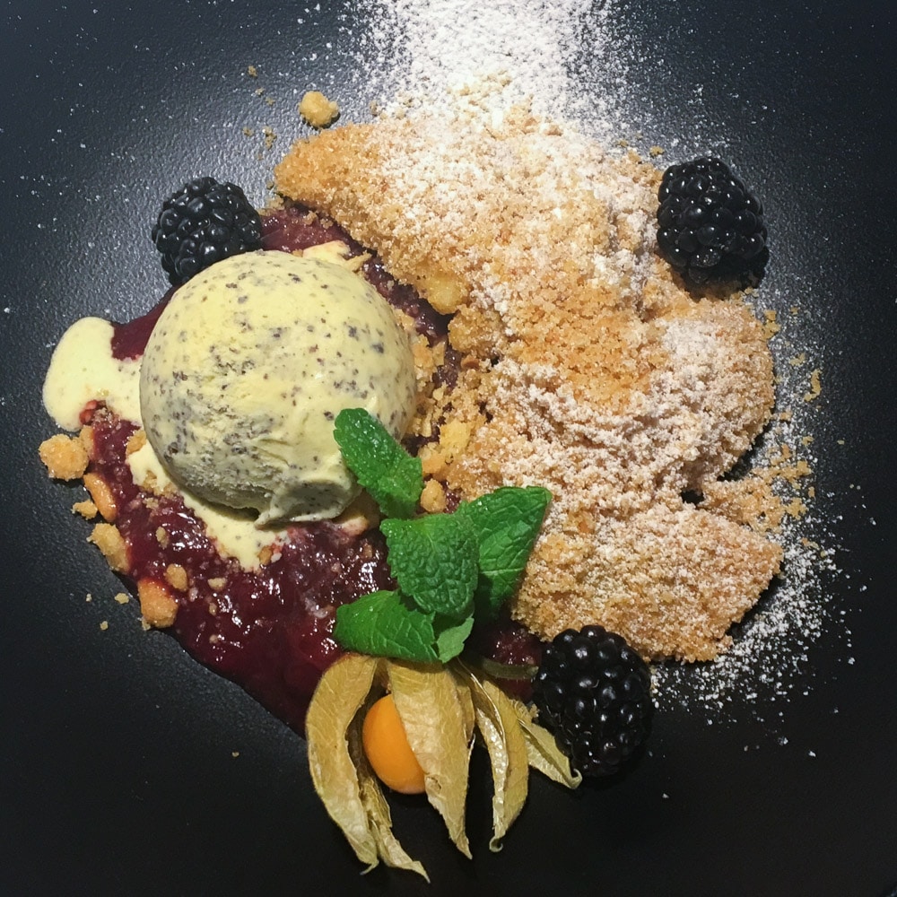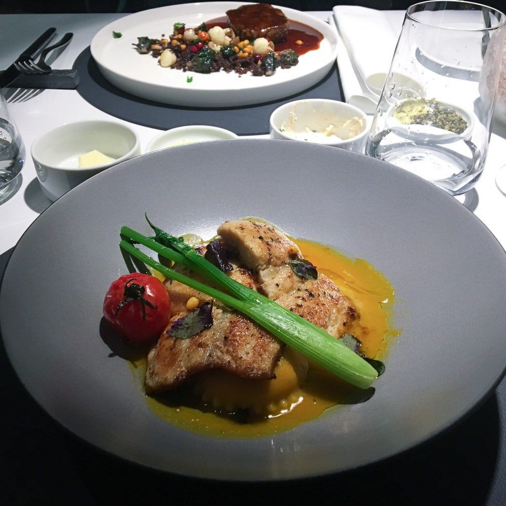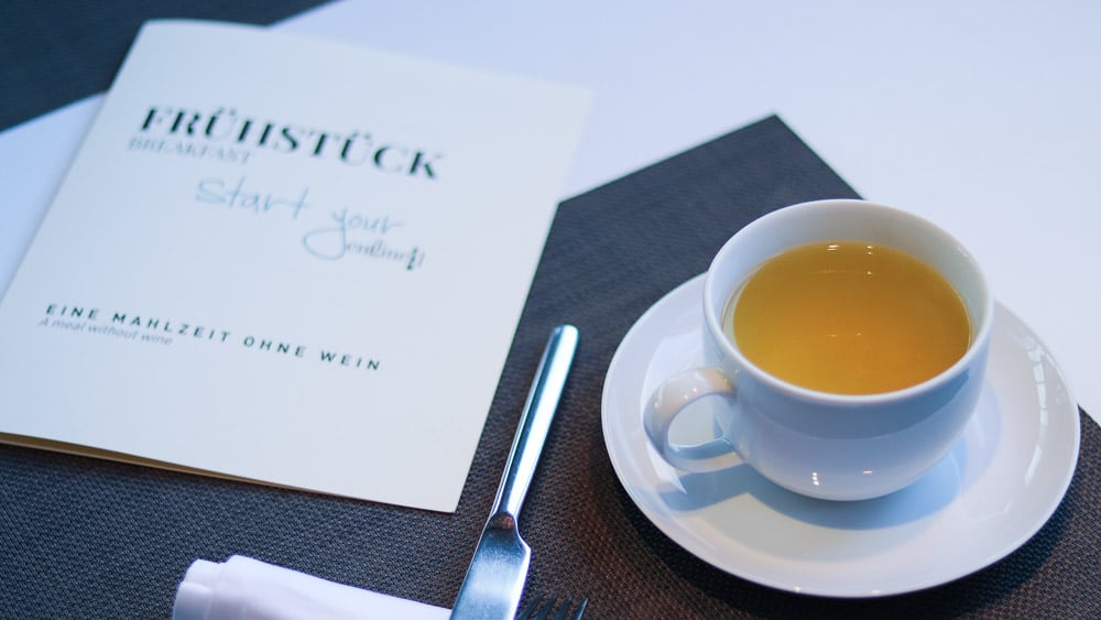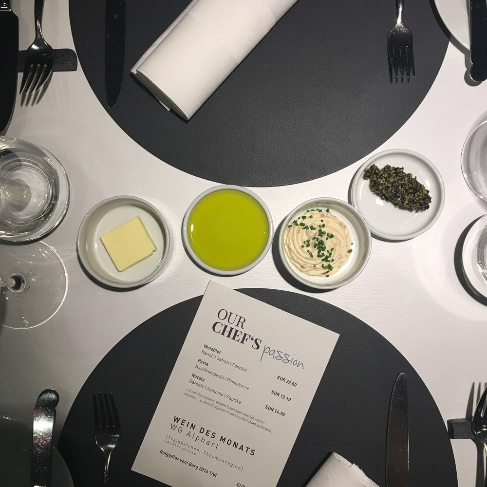 Nun zu den kulinarischen Aspekten des Loisium. Im Restaurant Vineyard werden die Gäste vorrangig mit frischen Zutaten aus der Region verwöhnt. Das Ambiente ist angenehm ruhig und stimmungsvoll. Zum Start in den Abend lädt ein reichhaltiges Käsebuffet mit einer großen Auswahl an verschiedensten Brotsorten und Gebäck. Natürlich dreht sich auch hier alles um den Wein – wie könnte es in Langenlois anders sein? Beeindruckt hat mich der Sommelier, der mit sehr viel Leidenschaft seine Weine angeprisen hat und mit seinen Empfehlungen ganz genau meinen Geschmack getroffen und die idealen Begleiter zu meinen Speisen ausgewählt hat. Die Abendkarte des Restaurants ist klein, aber fein. Das 3-Gänge-Menü hat mich ausgesprochen positiv überrascht, denn die Qualität der Speisen hat meine Erwartungen übertroffen. In der folgenden Galerie könnt ihr euch ein Bild davon machen, die Optik spricht für sich. Wollt ihr einen Blick auf die aktuelle Speisekarte des Vineyard werfen? Dann geht’s hier lang.