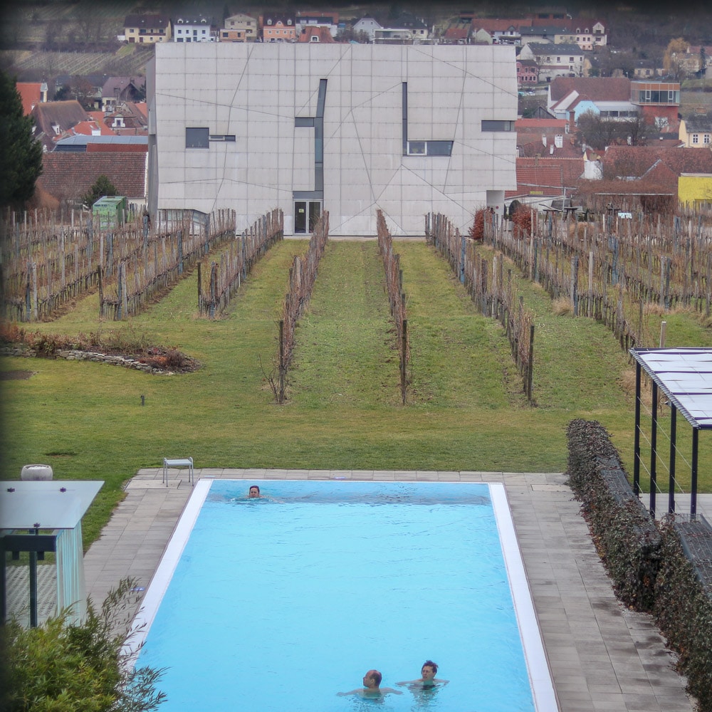 Als Hotelgast bekommt man ermäßigte Tickets für die Weinerlebniswelt, zu der man durch den Weingarten hinunter spazieren kann. Die Weinerlebniswelt ist ein beeindruckendes unterirdisches Labyrinth von Weinkellern aus verschiedensten Jahrzehnten, sehr interessant und informativ aufbereitet mit Lasershow, Wasserspielen etc. Wenn man am Ende des Rundgangs in der Loisium Vinothek ankommt, hat man schon so viel Gusto auf ein Glas Wein bekommen, dass man gerne das ein oder andere Flascherl mit nach Hause nimmt.