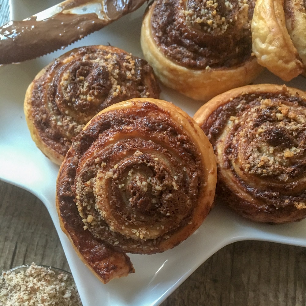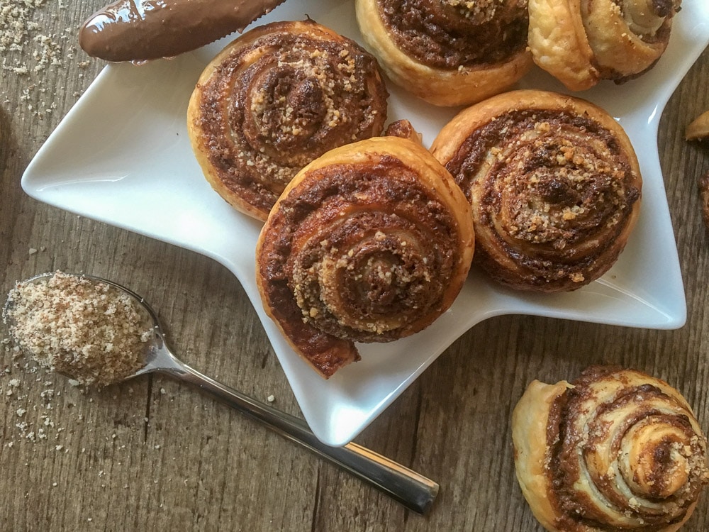 Die Vorbereitungen für Weihnachten gehen in die Zielgerade! Seid ihr noch auf der Suche nach einer Last Minute-Idee für euer Weihnachtsfrühstück? Dann habe ich genau das richtige Rezept für euch. Diese Nougatschnecken sind schnell gemacht und schmecken mit Sicherheit Groß und Klein. Blätterteig ausrollen, mit Nougatcreme bestreichen, in Scheiben schneiden und ab ins Rohr! Nach 20 Minuten kommen die knusprigen süßen Schnecken aus dem Ofen und können gleich ganz frisch zum Frühstück serviert werden.