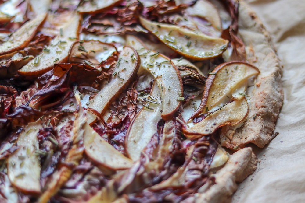 Radicchio-Birnen-Pizza mit Buchweizenteig