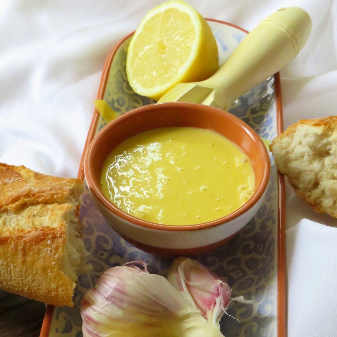 Was macht man mit übriggebliebenen Eidottern? Aioli! Der klassischen mediterranen Knoblauchmayonnaise habe ich mit Zitronenschale und -saft noch einen Hauch Frische verliehen. Zitronen-Aioli genießt man einfach als Dip mit frischem Weißbrot, aber auch zu gegrillten Garnelen passt es wunderbar.
